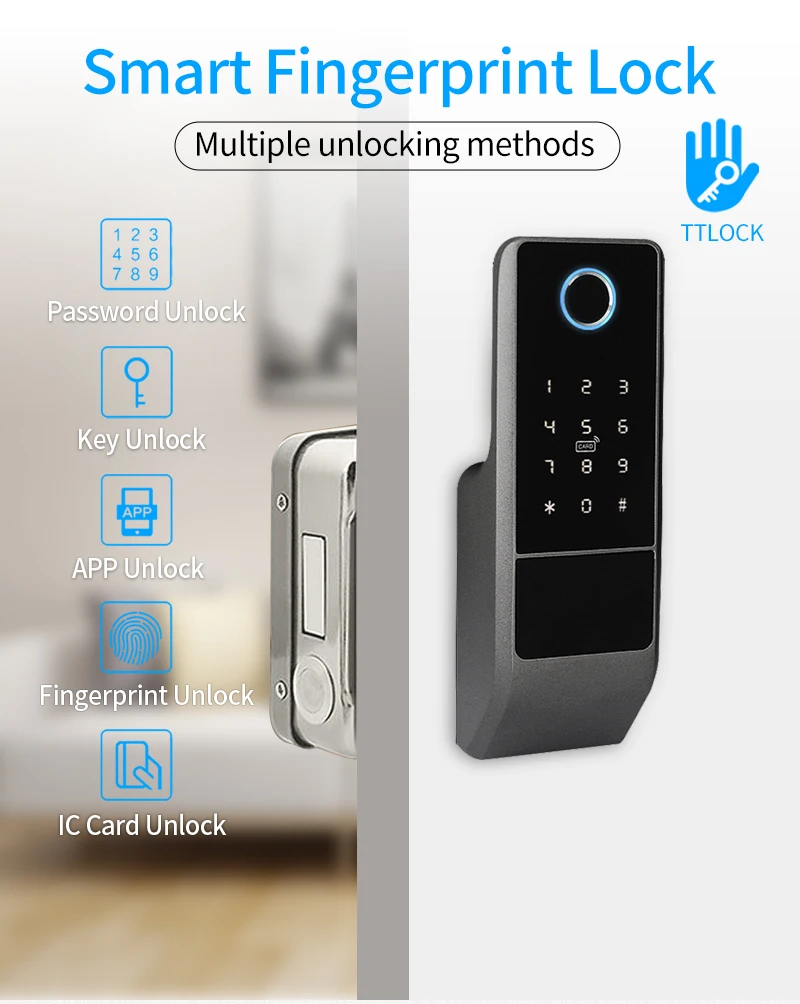Unlock mode:TTLOCK APP / Fingerprint / Password / Smart Card / MEchanical Key/Remote Control Unlock
